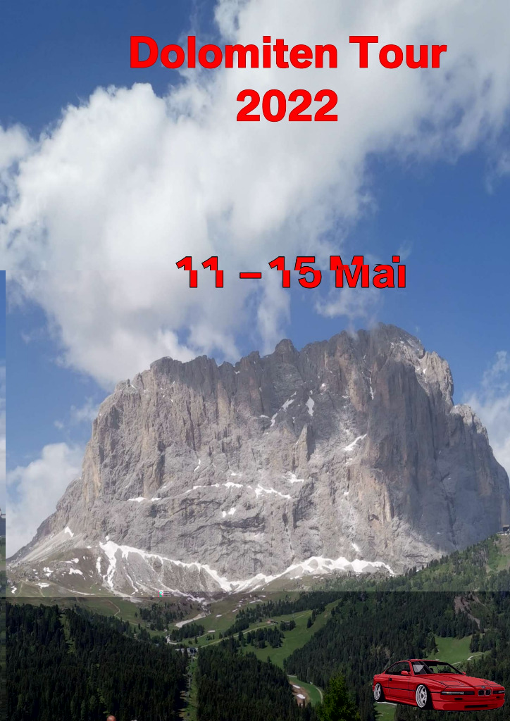 unsere Planung für die Dolomiten Tour 2022 ist fertig. Wer mit mag, einfach melden. Egal mit welchem Auto. wir haben diesesmal den Schwerpunkt Cabrio's... Auch ist die Tour auf max. 10 Fahrzeuge geplant. Soviele Zimmer sind halt geblockt. Sollten es mehr werden, versuchen wir nachzubuchen. Es wird sich dan schon eine Lösung finden...