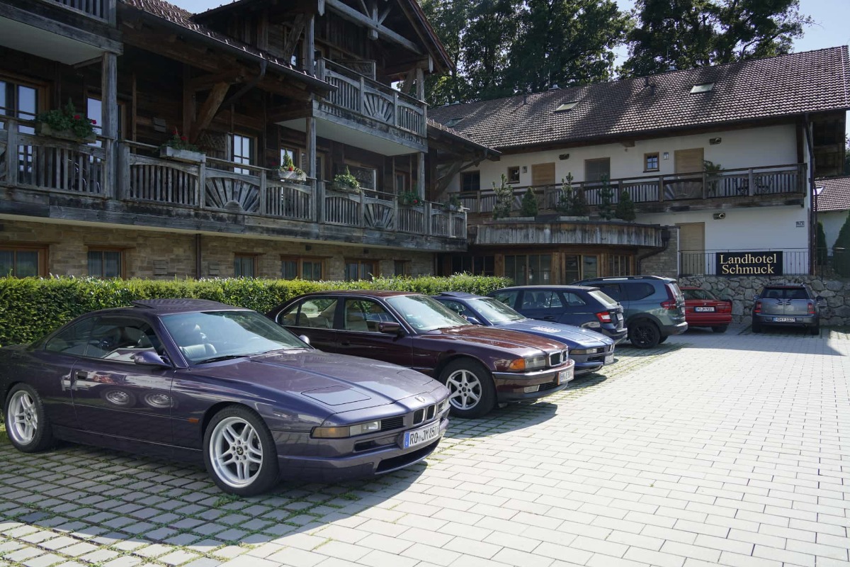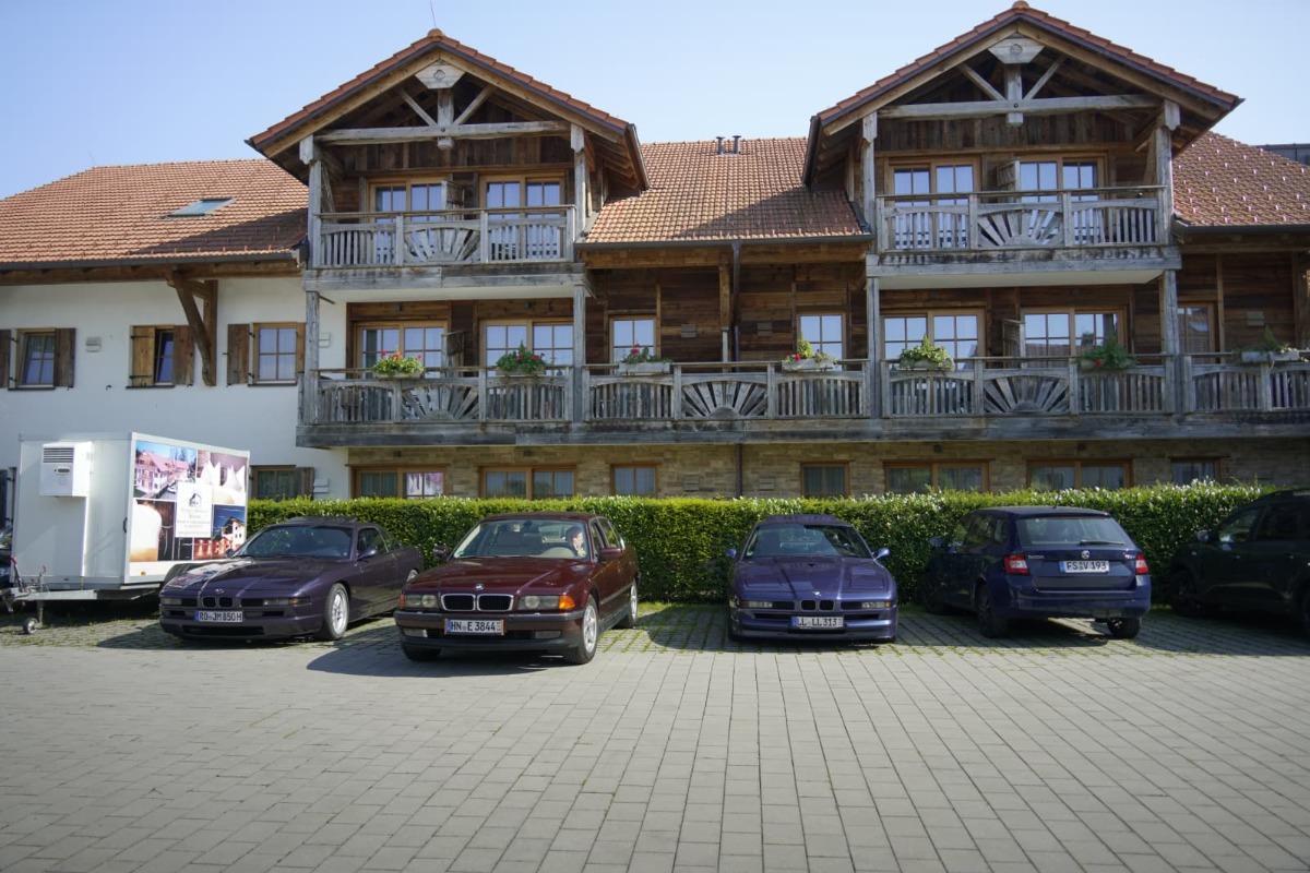 Bei Kaiserwetter waren insgesamt 37 Personen, neunzehn E31, davon ein Alpina B12 5.7 (Nr. 57 von 57) ein E38, ein M6, ein Alfa Spyder und ein Porsche 911 beim Stammtisch zugegen.