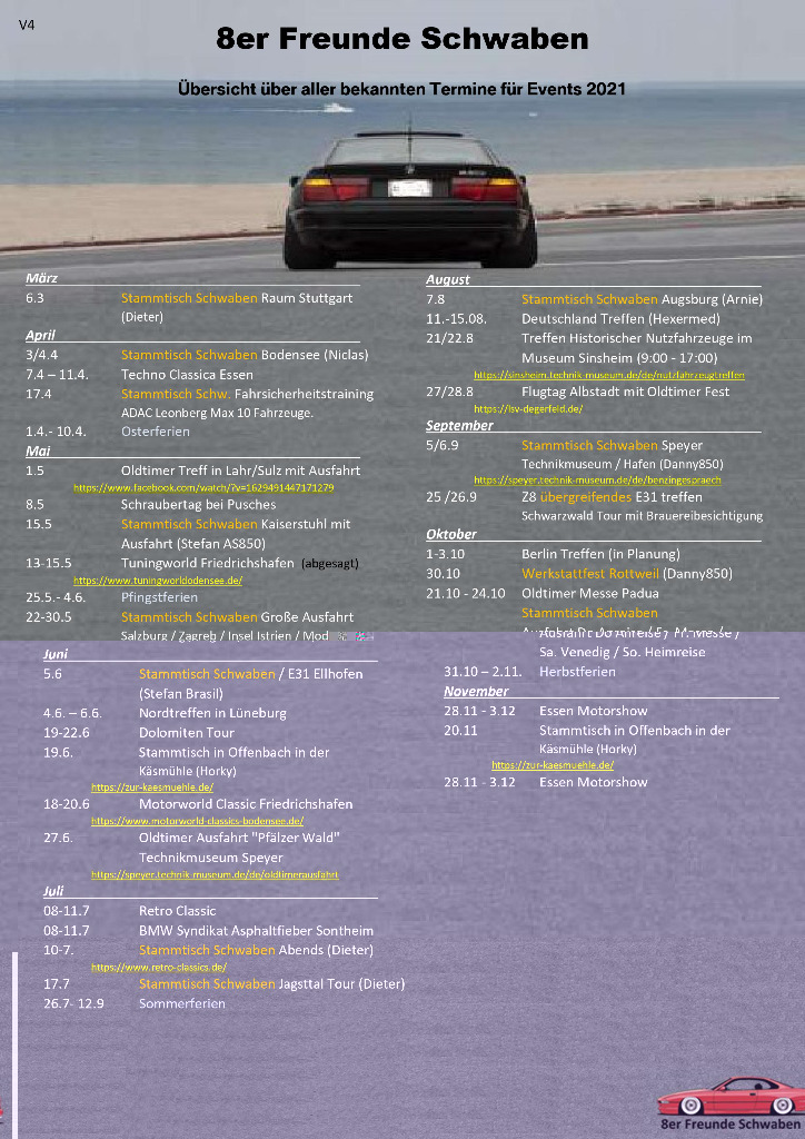 wir haben wir hier für alle 8er Fan's einen übergreifenden Terminkalender erstellt, den wir immer aktualisieren.